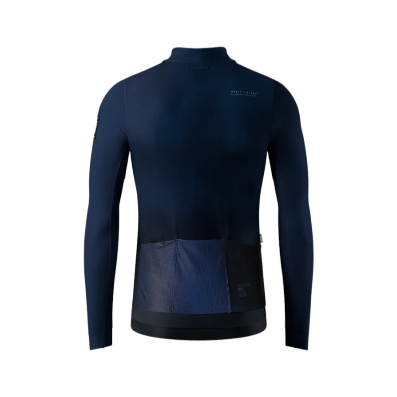 El jersey incluye una banda siliconada visible que recorre toda la cintura para asegurar una sujeción firme, junto con detalles reflectantes ubicados en el cuello y la zona de los bolsillos para mejorar la visibilidad en condiciones de poca luz.